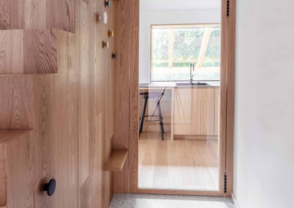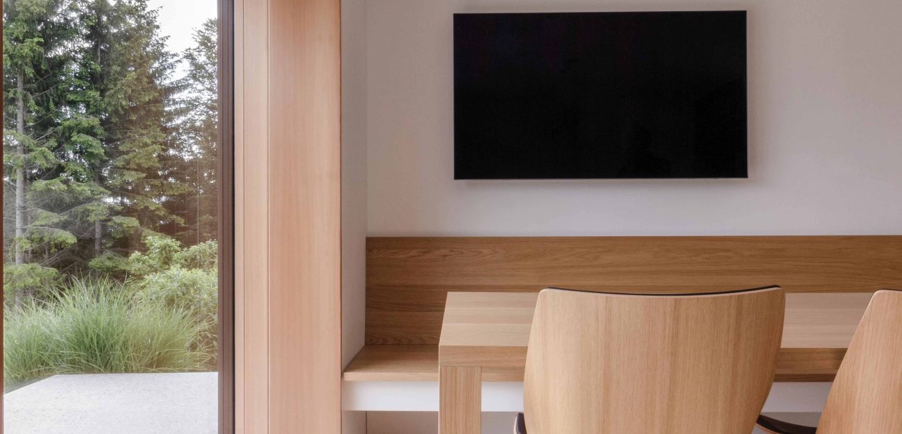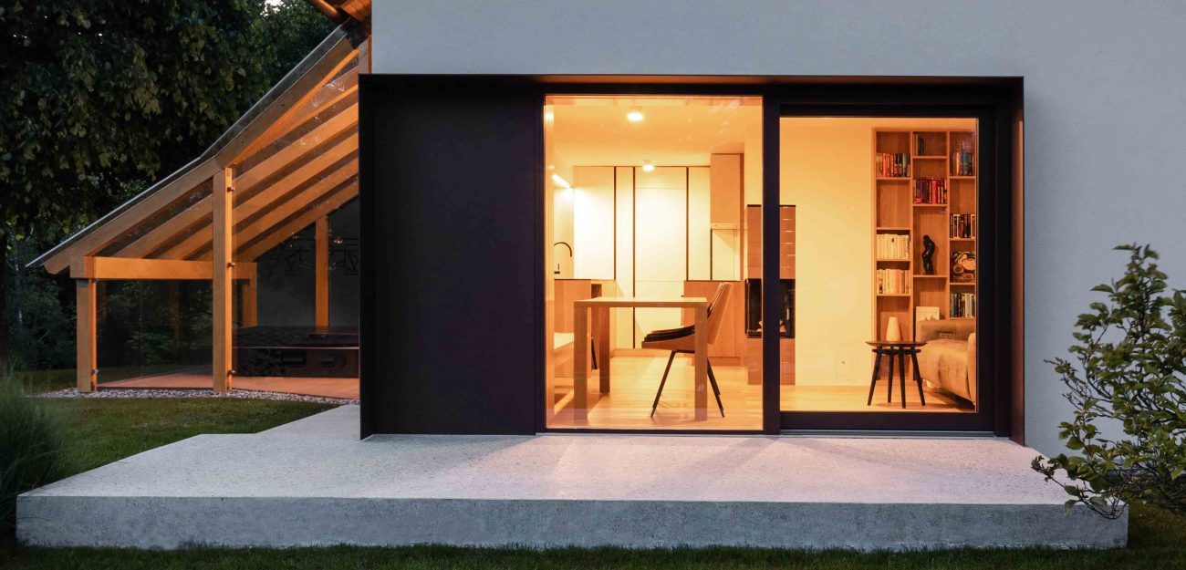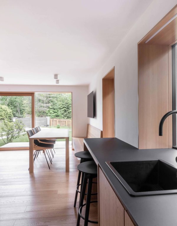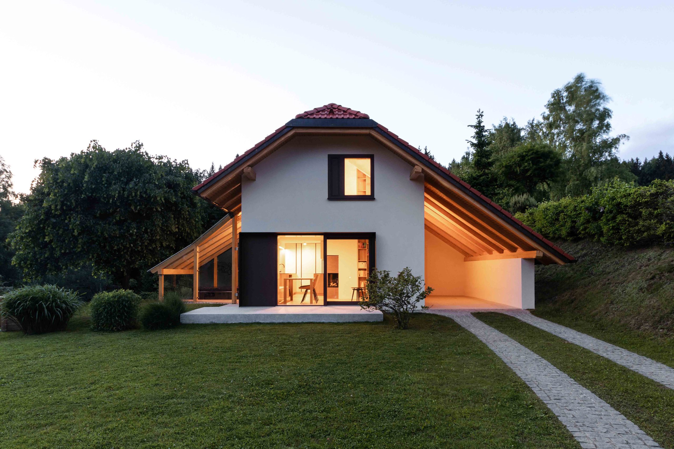 Het huis, gelegen in de vrije natuur van de bossen van Pohorje, werd gebouwd in de jaren negentig. Het gebouw had een compacte oppervlakte, kamers met kleine raamopeningen en een vervallen inrichting. De investeerder wilde het huis opknappen, het verbinden met de omgeving en het dichter bij de moderne levensstijl brengen. De renovatie van het huis heeft tot doel de leefruimte binnen te verbinden met de groene omgeving rondom het huis. Dankzij het doordachte ontwerp van de beperkte oppervlakte kan er comfortabel worden geleefd in een huis dat zowat alles bevat dat we nodig hebben. (Foto: Matic Škarabot)