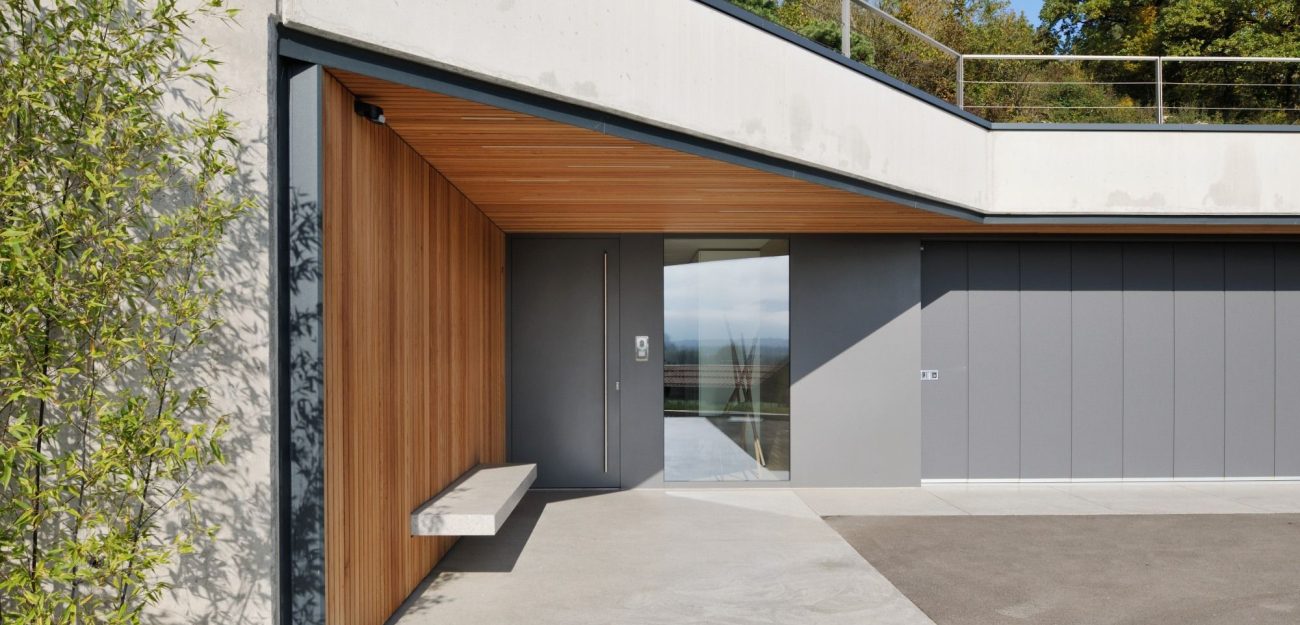 Het huis staat op een steile zuidelijke heuvel en biedt uitzicht op het moeras van Ljubljana. Het terrein vereiste het ontwerp van twee externe platforms. Het onderste bestaat uit een oprit en de hoofdingang van het huis.