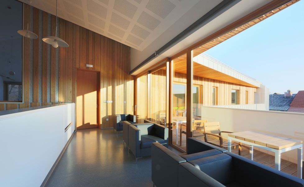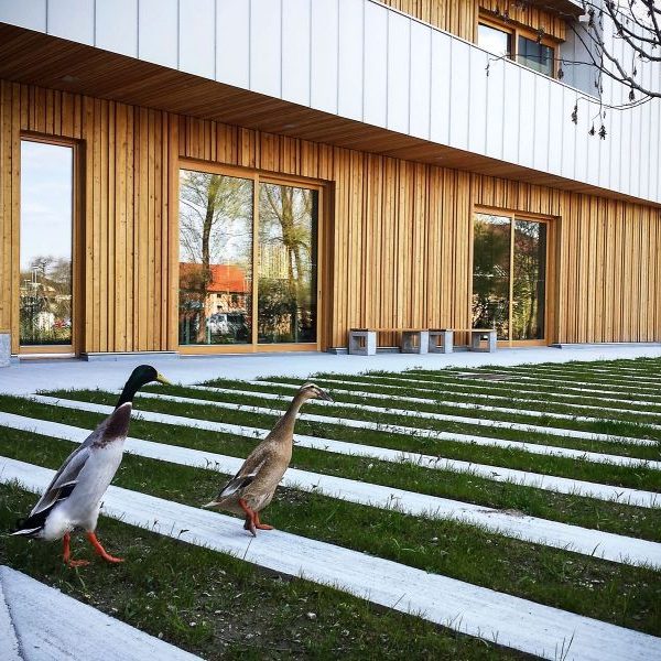Het Zorg- en Werkcentrum INCE levert een maatschappelijke service van zorg en werkgelegenheid onder bijzondere voorwaarden, evenals een institutionele zorgverlening voor personen met lichte tot ernstige intellectuele ontwikkelingsstoornissen. Het gebouw ligt op een langgerekt terrein aan een beek. Het is verdeeld over een erf langs de weg en een eigen tuin bij de beek en het ontwerp komt overeen met de typische indeling van een dorpscentrum en de traditionele huisjes. Kenmerkende elementen van de traditionele Sloveense bouw, zoals een rondlopend balkon (“gank”), het hout, de dakrand en het zadeldak dempen de omvang van het gebouw, waardoor het qua grootte meer op de omringende huizen lijkt. De dynamische vorm van het zadeldak maakt het hele gebouw tot één geheel.